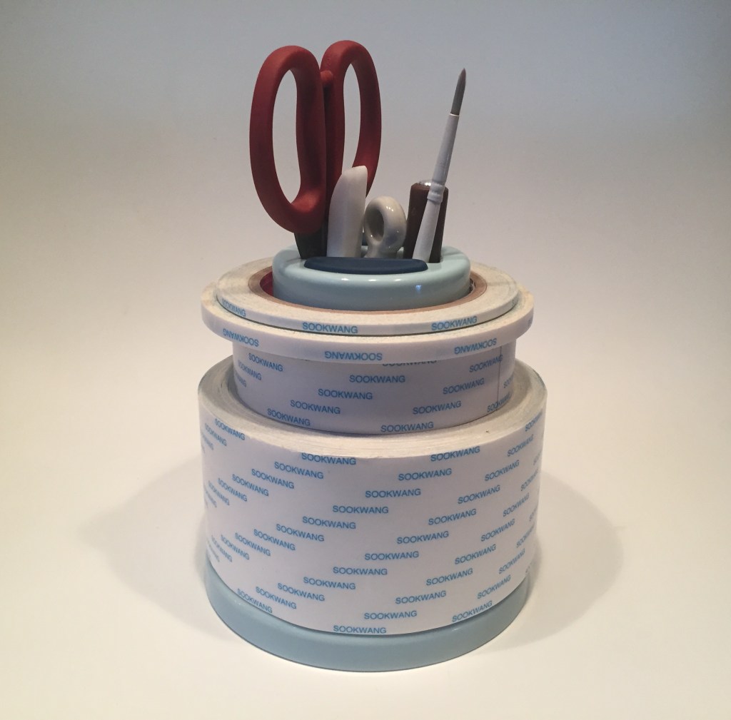This is a fairly simple idea brought to glorious life by Diana Crick and the folks at Scor-Pal. This will hold any roll of Scor-Tape as well as any other roll of double-sided tape with a 3″ (75mm) core – that means this would hold most larger rolls of foam tape as well! It also sports six little rubberized feet on the bottom so it won’t slide around on your desk!