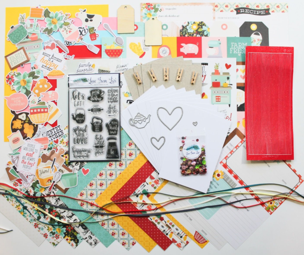 Now, Lizi mentioned in her Unboxing that she had done another kitchen/food kit a number of years ago… I remember precisely, because it was the first Love From Lizi Kit that I got to play with – the August 2017 kit. I actually made a little recipe book as an extra project with that kit… maybe that’s what gave Lizi the idea to encourage us to make recipe books with this kit! And she included supplies specifically for that project!