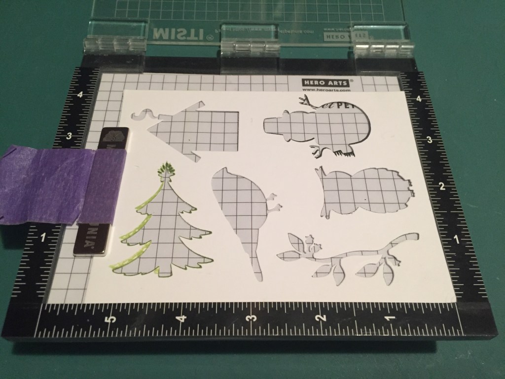 Let’s look at that Christmas tree stamp – seems like it belongs on the hill in the rectangle…