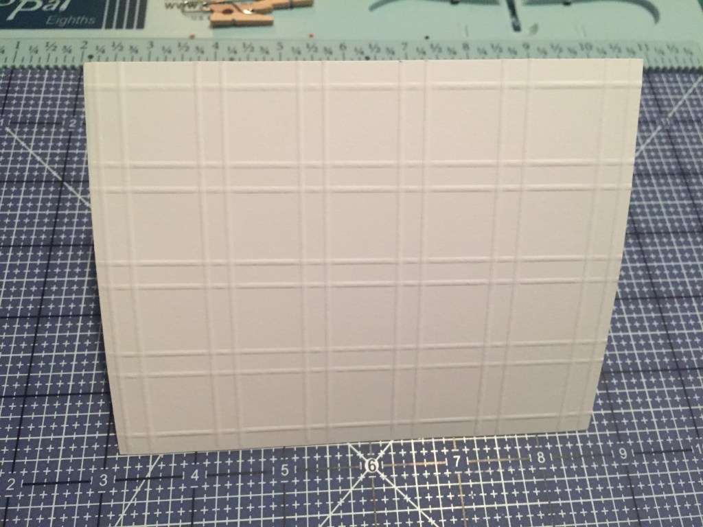 Here’s a straightforward Box Plaid pattern. With the short side of card stock in the top left corner of the Scor-Pal, I scored at 1/4″, 1″, 1 1/4″, 2″, 2 1/4″, 3″, 3 1/4″, and 4″. Rotate your paper so the long side is at the top and score at 1/8″, 3/8″, 1 1/8″, 1 3/8″, 2 1/8″, 2 3/8″, 3 1/8″, 3 3/8″, 4 1/8″, 4 3/8″, 5 1/8″, and 5 3/8″. That will center your box plaid on your card stock and this can be trimmed down to any size you need. Very sharp, neat and clean!