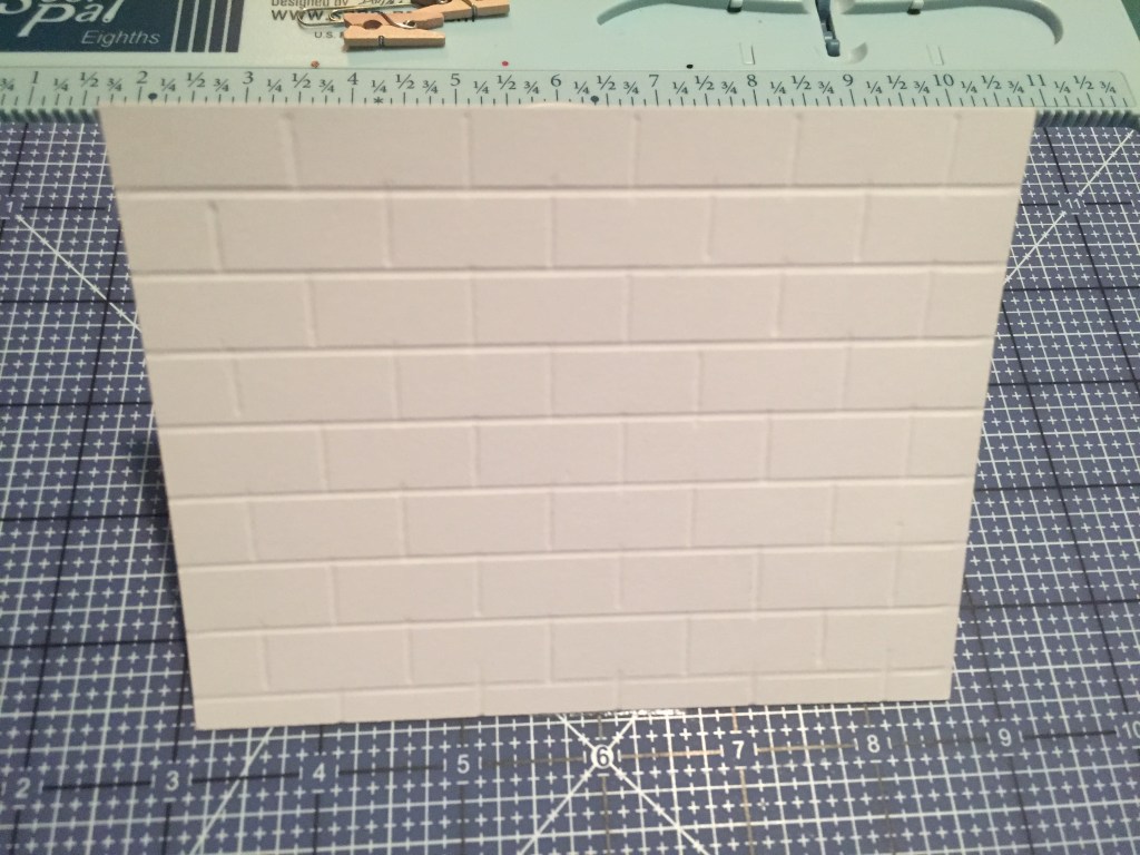 This Chair Rail Border is a terrific addition to any indoor scene! With the short side of my card stock along the top fence, I scored at 2 1/8″, and 2 3/8″ for the top rail. I turned the card stock 90 degrees and scored the panels at every half inch mark, stopping at the bottom score of the rail. Rescore the horizontal lines to improve the over all look. This pattern works on the embossed side (shown) or reversed to the de-bossed side.