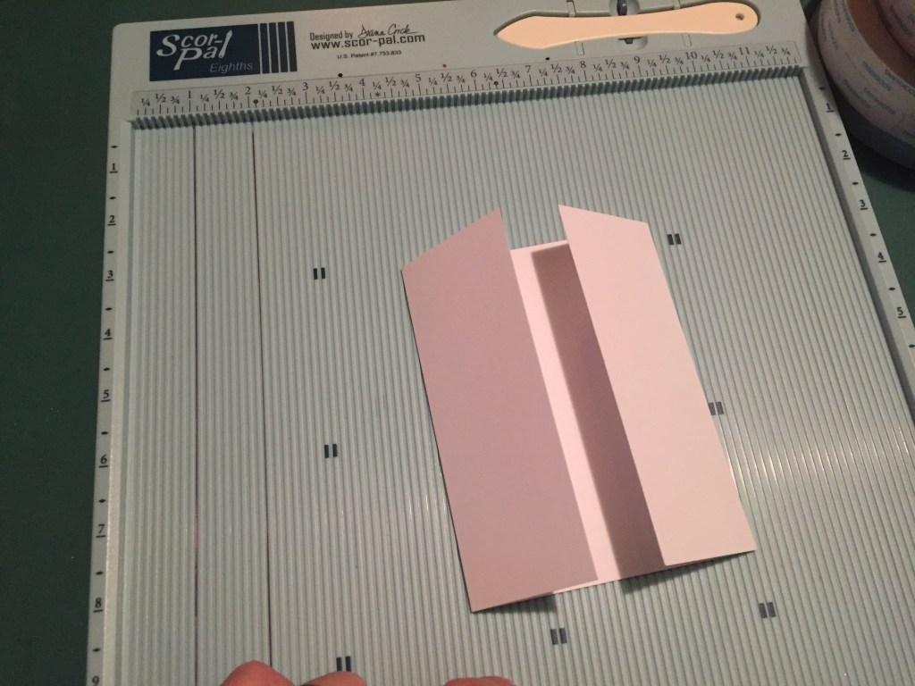 The bottom flap is longer than the sides, so I’ll add my 1/4″ Scor-Tape to the bottom edges of the side flaps to assemble the envelope. This keeps me from glueing the envelope shut!