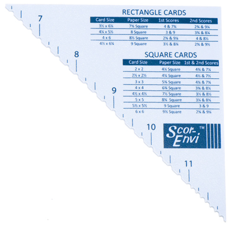 We can also create custom envelopes using your Score-Pal as well. The Scor-Envi Template makes envelope making a breeze and it has a variety of envelope sizes and instructions printed directly on the template. Not only is this a great template for creating envelopes for odd-sized cards, but it also dresses up a standard card with a matching envelope! Let’s do a standard A2 envelope first.