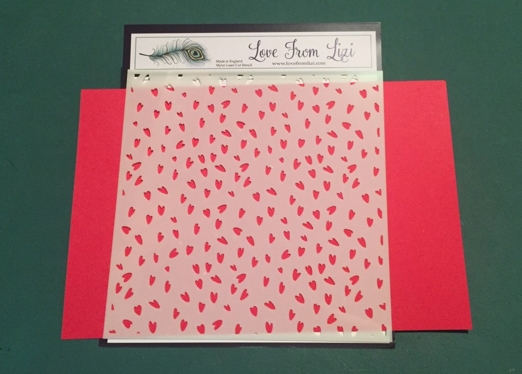 It’s always a treat to get a stencil in our kits! This month we have this fun 6″ x 6″ Scattered Hearts stencil with a large assortment of hand-drawn hearts playfully dancing across the whole stencil. One of our pattern papers features this pattern!
