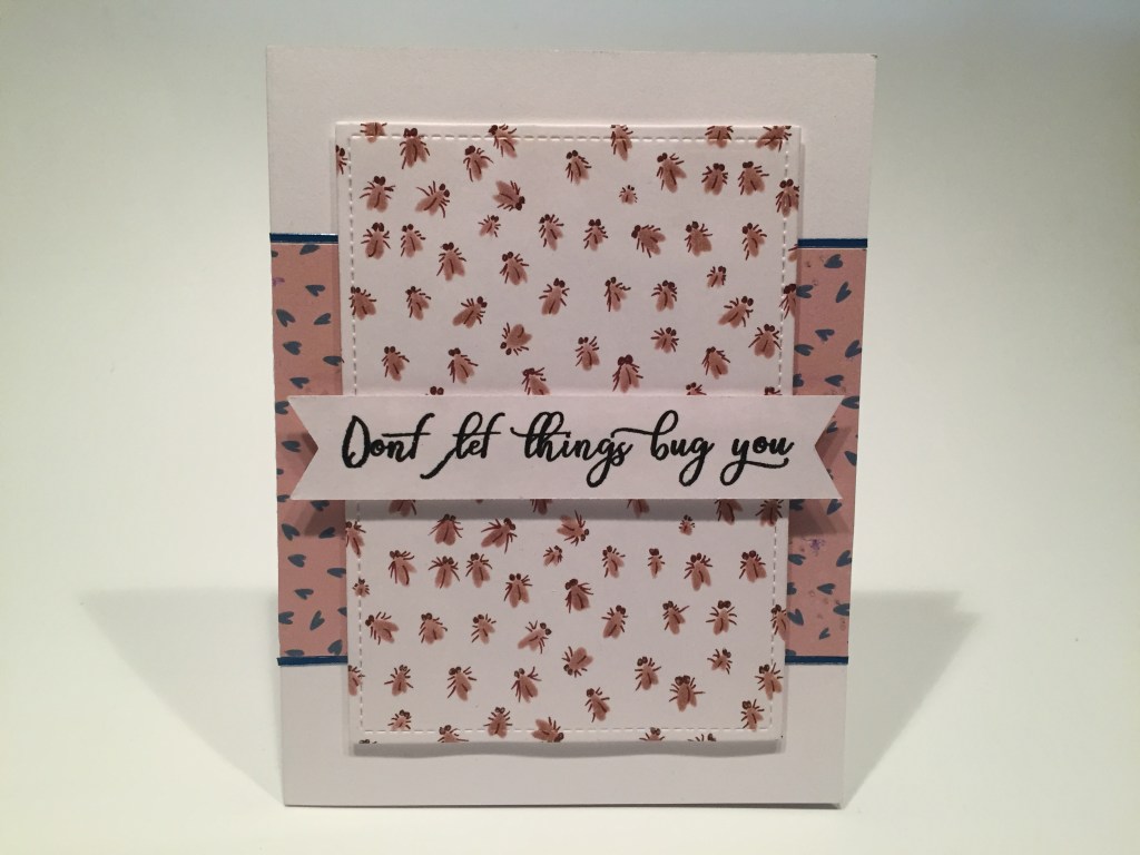 One sentiment really had me scratching my head. “Don’t let things bug you” is a perfectly fine sentiment, but I was having a hard time figuring out how to illustrate that sentiment on a card.