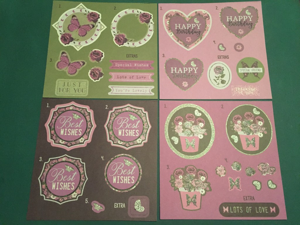 And we get EIGHT of these sheets! Most of the decoupage sheets have butterflies, but not all of them! Again, I love those dark purple roses, and there are lots of “extras” on these sheets as well. I could make 10 cards from these sheets alone..!!