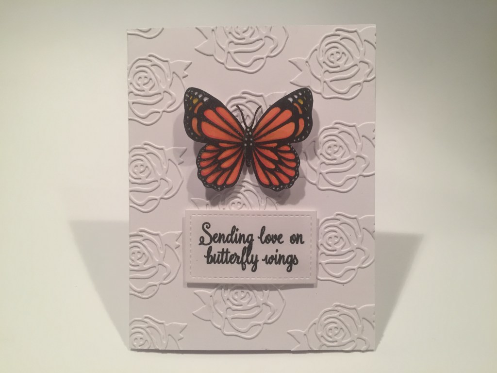 I also received the add-on Butterfly Wings stamp set this month – a very unique butterfly stamp with flowers for wings!