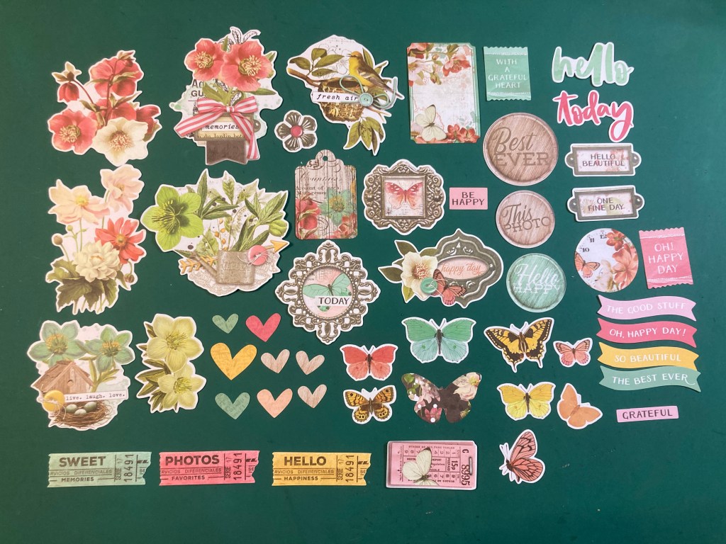 And we get about 50 ephemera pieces! Some lovely, large florals, sentiment medallions, butterflies, hearts, banners, and even some more ticket icons. A great big pack of ephemera to include with this whole multi-media kit!!