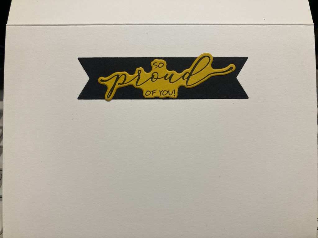 I added the mouse in place using foam tape, and I added the die cut “so proud of you” sentiment on the inside of the card. I die-cut a Black banner using the Lawn Fawn Everyday Sentiment Banners die set, trimmed it to length, and glued the sentiment on top. Love using pearlescent card stock on the cap and gown! No Bling Needed!