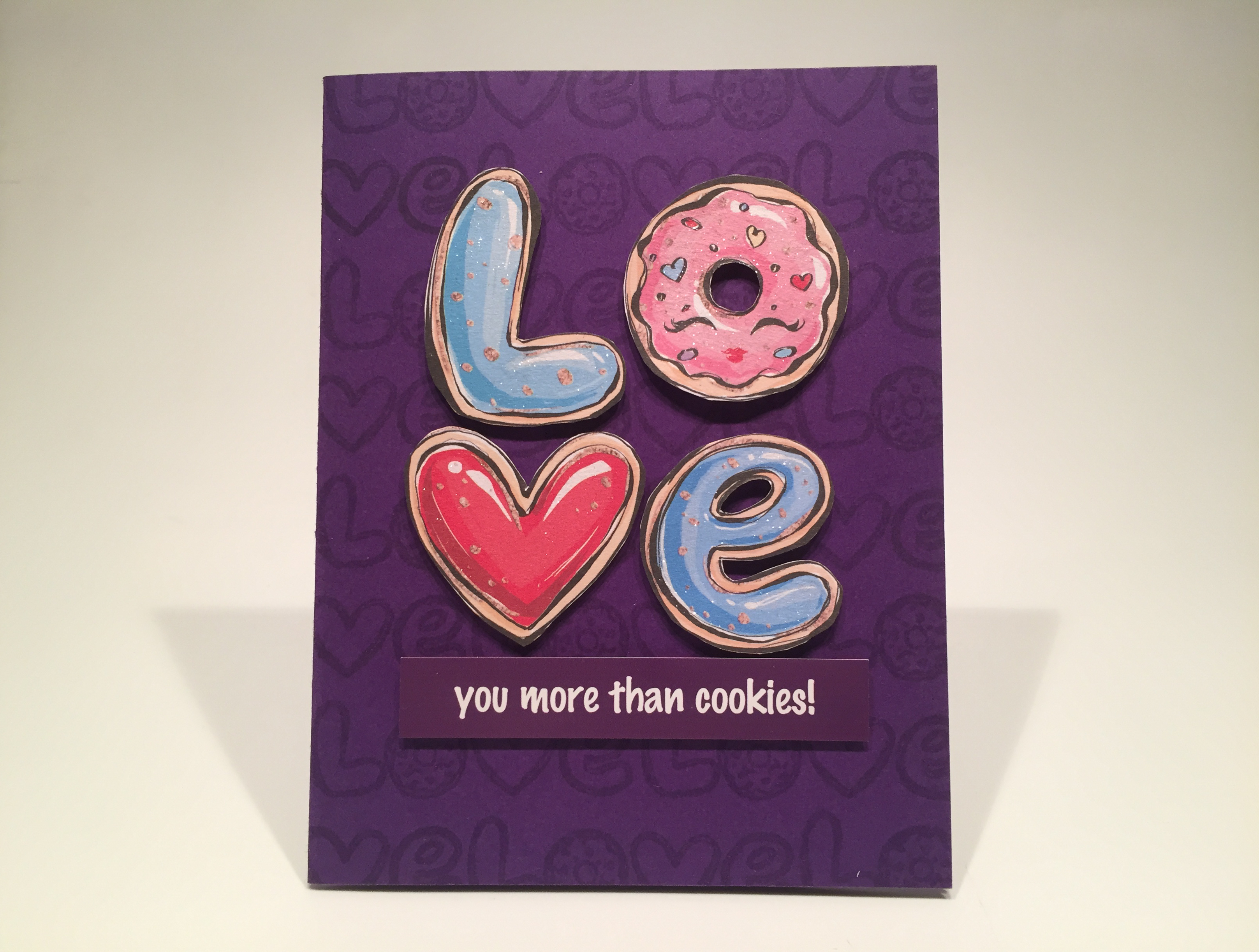 Ain’t it the truth! A fun Valentine for any cookie addict! I stamped the cookie LOVE stamp from the add-on stamp set all over the front of a Deep Purple card base using VersaMark ink for a subtle yet recognizable pattern behind our cookie ephemera! I fussy cut the white borders from the cookie ephemera pieces and added them to the card front with foam tape. I printed this sentiment using my Silhouette Software and the Marker Felt font. I printed that on a piece of photo paper for some added shine, trimmed it down to size and mounted that to the card front with some foam tape. I finished this card by adding some glitter to the frosting on all the cookies using a Spectrum Noir Sparkle Pen. It took me a little while to figure out that the circle cookie actually has eyelashes and lips… so I adjusted its position once I realized that! Cute! A sweet Valentine that has nothing to do with social distancing, quarantines, or isolation. Kind of a relief – I was getting a little depressed there…!