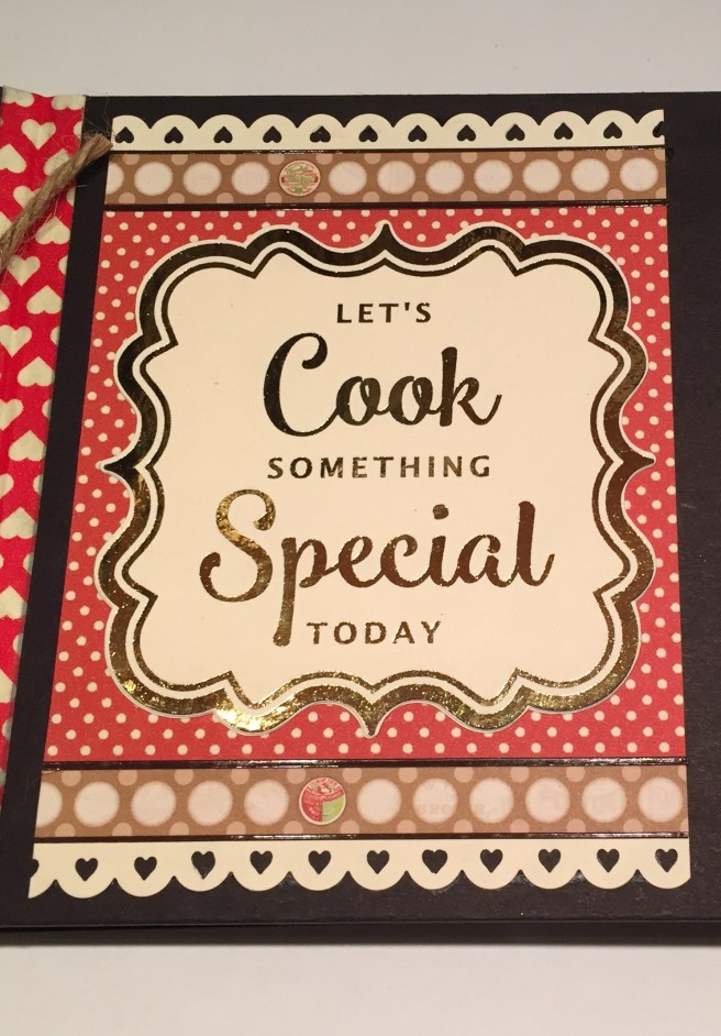 In that Family Recipes paper pad I had some extra backgrounds that I had used on an old Re-Gift-Able Recipe Book I created quite a long time ago, and that red polka-dot with heart trim reminded me of a placemat…