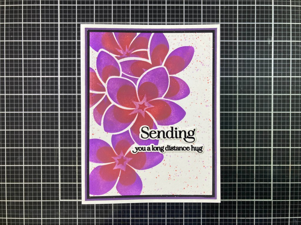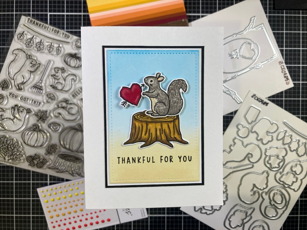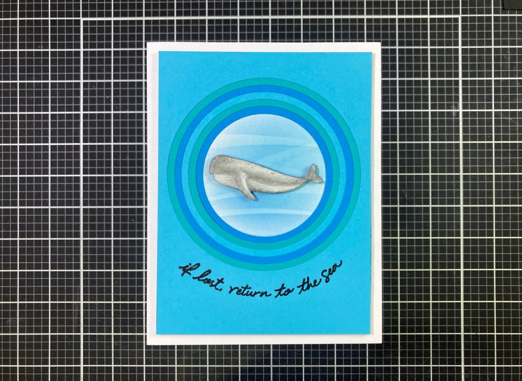 I stamped and embossed the sentiments as usual on a scrap of White card stock, die-cut them (and 2 blanks each) with their matching dies, and stacked and glued them together, and then down to the card front. A really unique die that creates a delightfully whimsical card for conveying “big squishy hugs” to anyone and everyone you’d like!