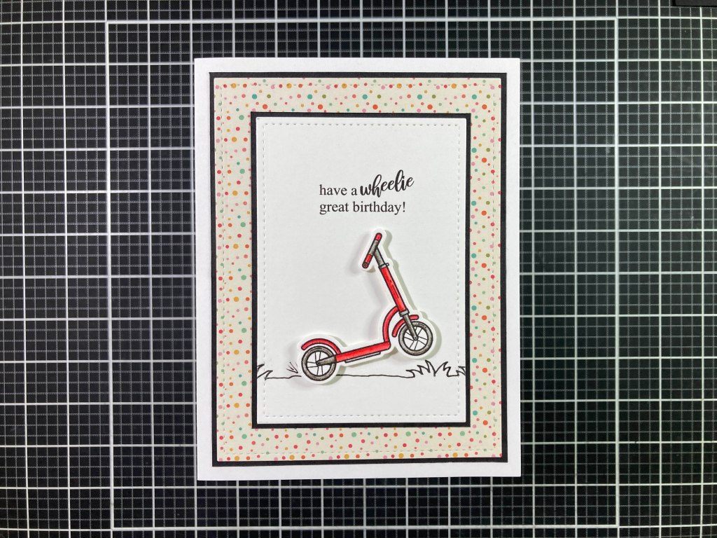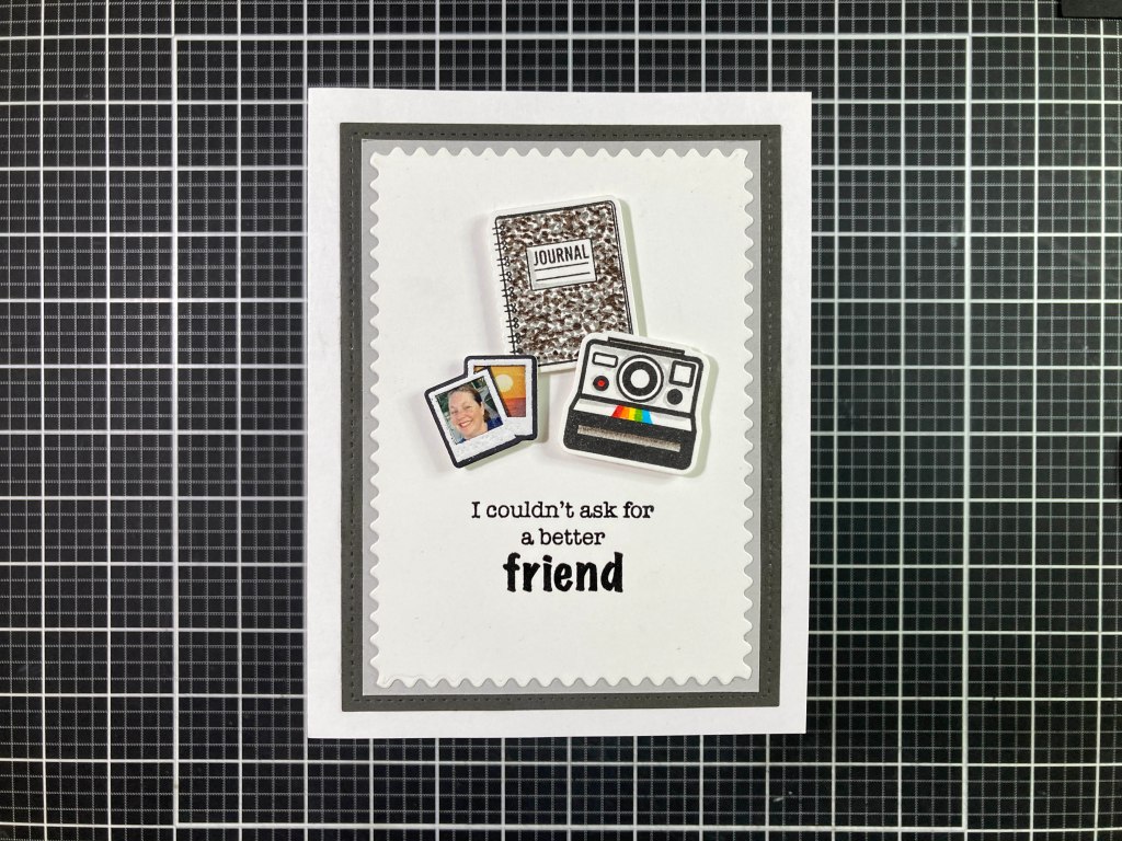 I added a thin Black mat behind the sheet of stamps and glued those down to an A2 White card base. And who doesn’t need another Birthday card in their stash! I’m thrilled to finally get to see how this Waffle Flower Postage Collage collection can work with a group of smaller stamps. And this is perfectly in line with the whole Hero Studio theme this month. I really like how this turned out!