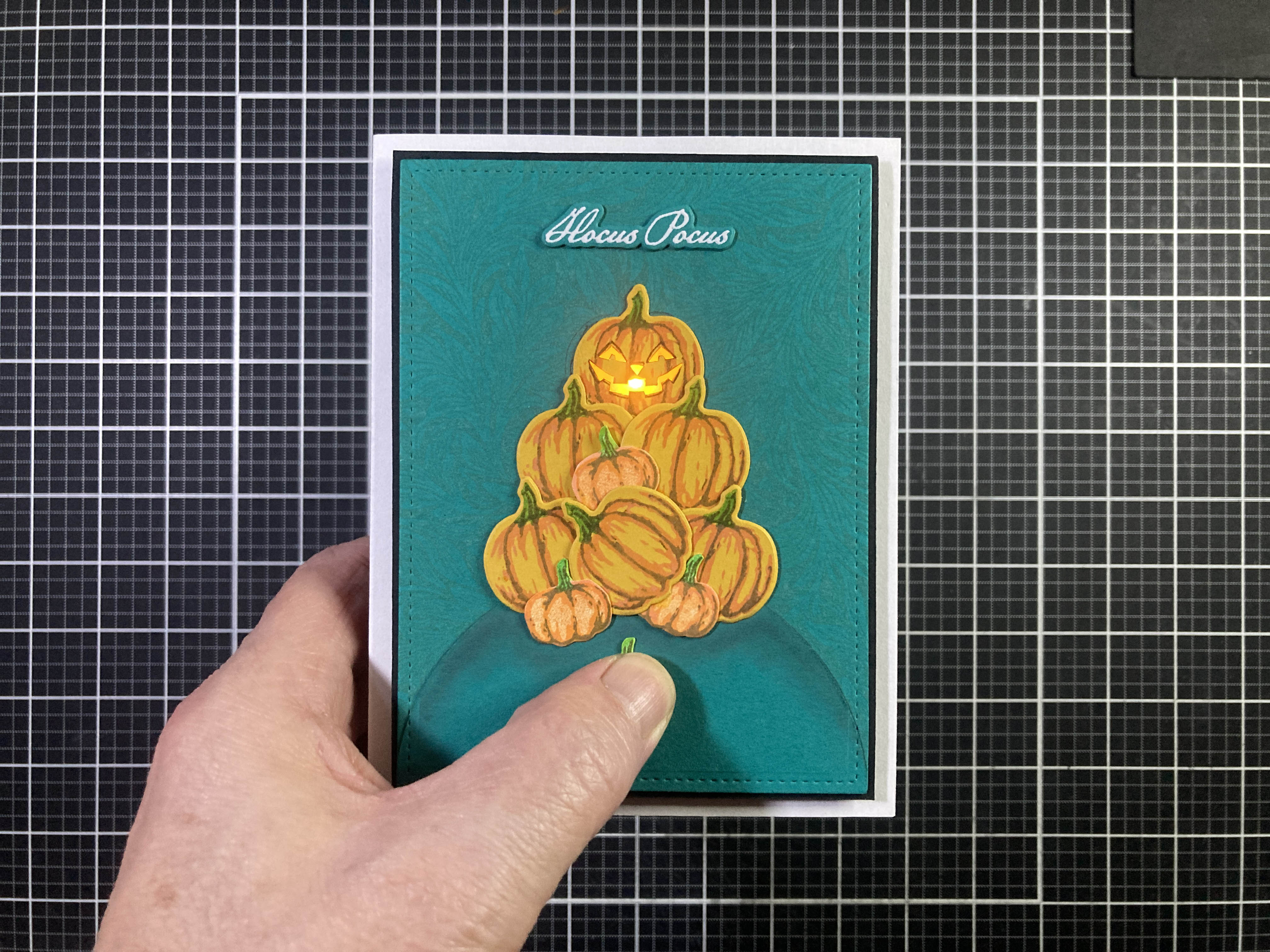 It’s Sweater Weather!!! I die-cut the two arms (only the two arms) from some Plain Ivory card stock and colored the hands as usual (Ohuhu R18, R19, R20). I took a 3.75″ x 5″ panel of White card stock and embossed this knitting pattern on the whole panel – this is an old Love From Lizi embossing folder from her October 2018 Card Kit. I added some ink blending around the edges and over the front of the embossing using Antique Linen Distress Oxide ink. I glued that to a thin Black mat and glued those down to an A2 White card base.