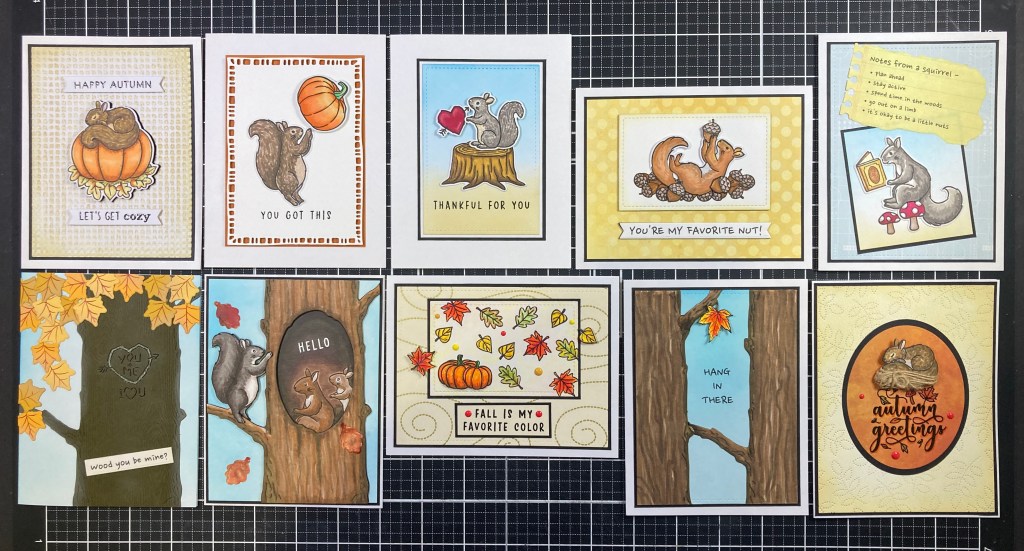 And before you know it, that’s all ten cards for this month! This is a handsome batch of cards with lots of COLOR!