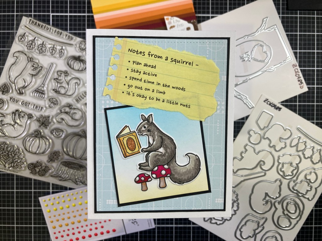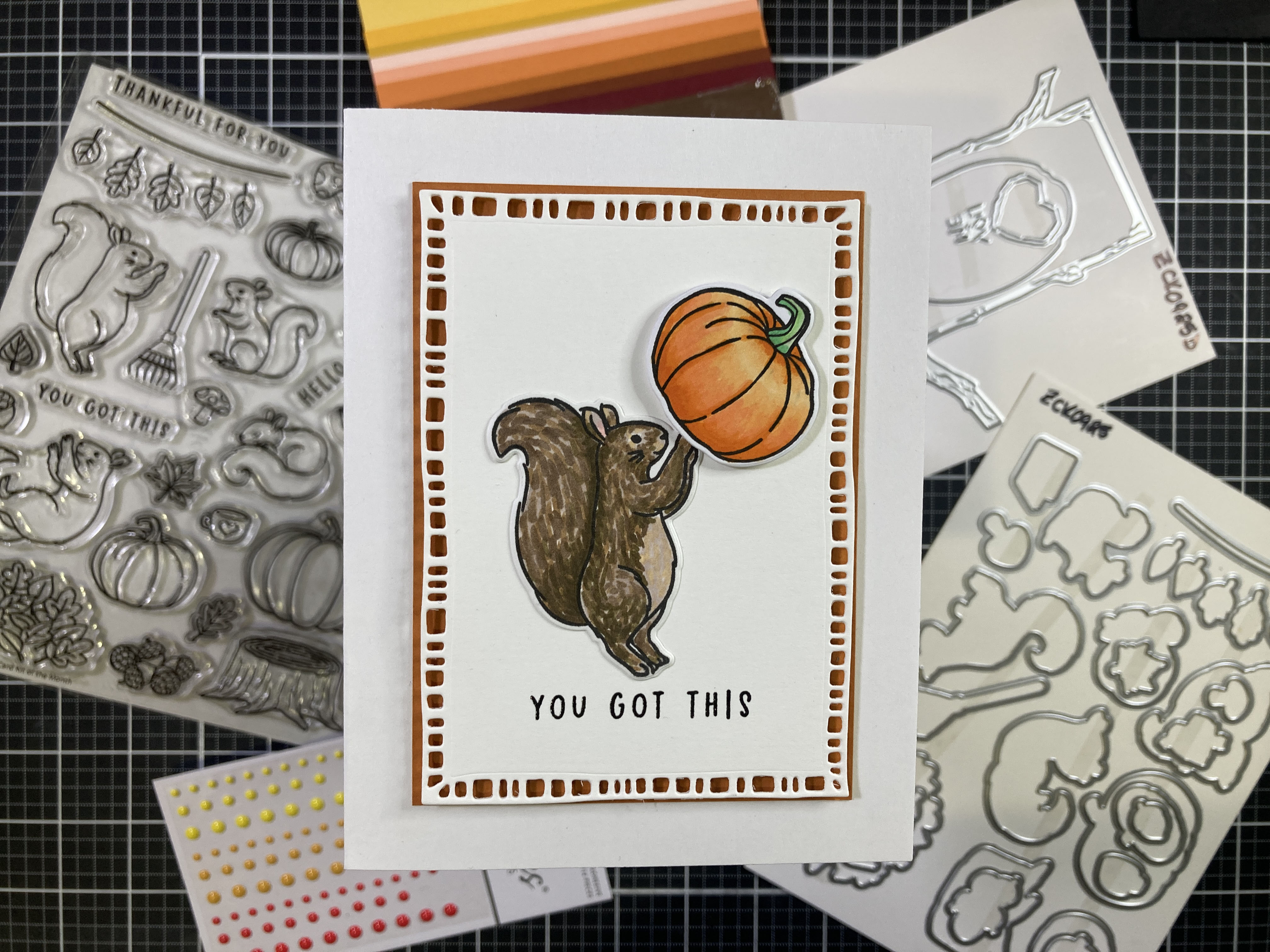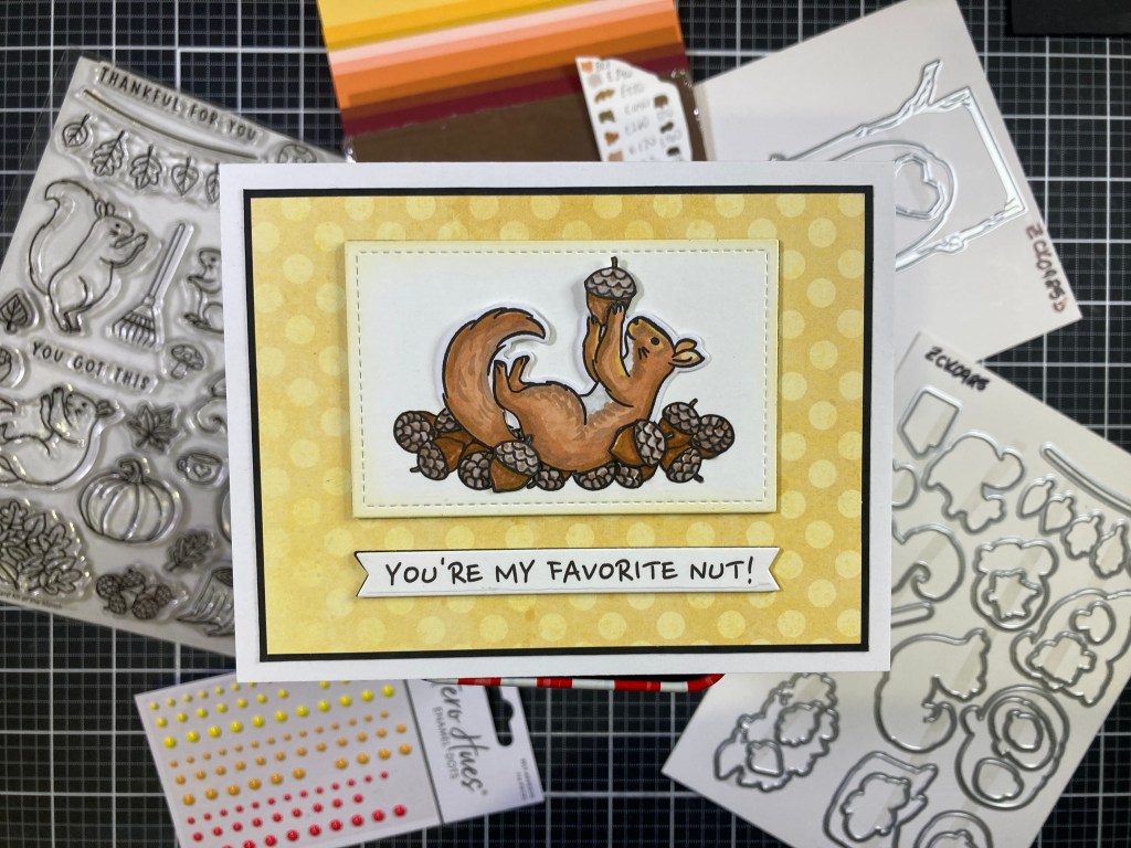 I did manage to use every stamp in the You’re Super stamp set except for the “deep breath, friend” sentiment. Somehow that just seemed a little too personal for a greeting card. I also opted for some simple masking this month instead of relying on the coordinating dies to create my vignettes – but I always love (and use!) the sentiment dies! I did use every die in the Big Squishy Hugs die set, but didn’t use much of the Brown Acrylic Speckle – it just didn’t feel very appropriate for most of these cards. But we did end up with a wide variety of cards colored in a number of different mediums with some good puns (one extra!) and even some interactivity. Admittedly, I had a great time playing with this kit!