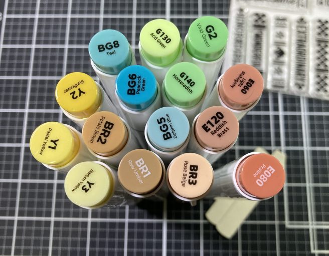 I must give a big shout out to these Zig Clean Color Real Brush Markers. I got this set of 36 pens exactly 10 years ago, and all of the pens are still going strong – not one has dried out, and I feel like I use them pretty regularly. When paired with Strathmore Bristol Smooth card stock the blending and watercolor possibilities seem almost effortless! And they LAST!